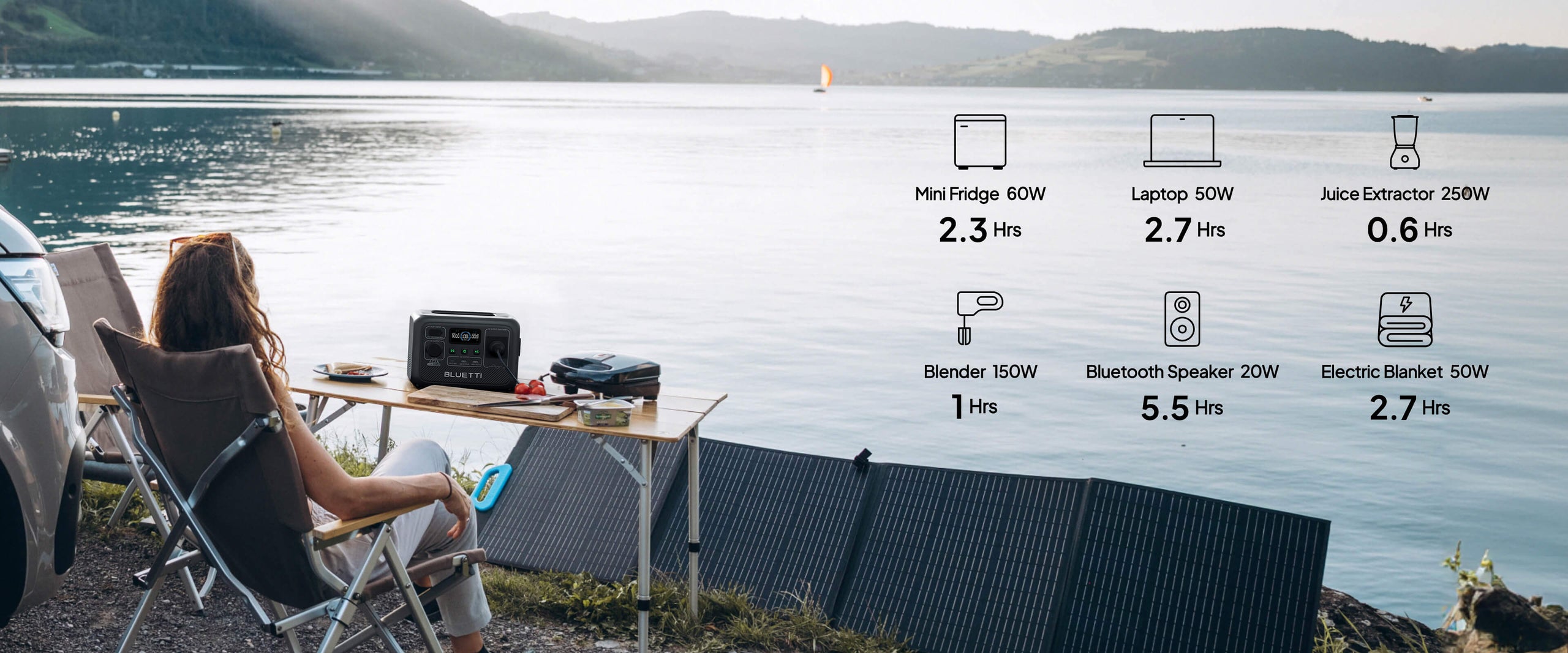 The AC2A allows up to 200W solar input, efficiently topping it up in just 1.2 hours. Also, you can get it charged via a car charger while driving, no need to worry about the battery dying out on the road.