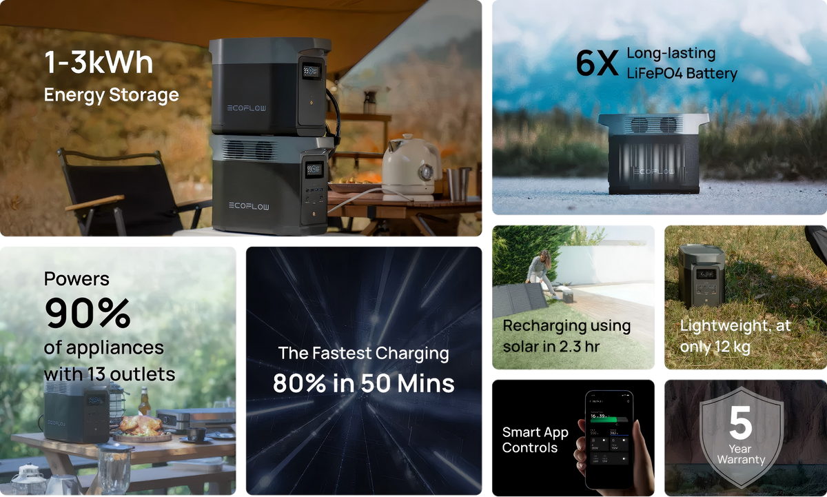Support one DELTA 2 extra battery or DELTA Max extra battery